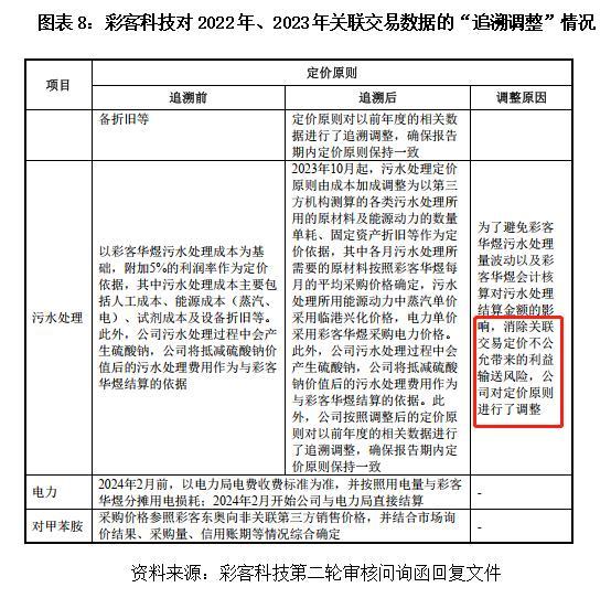 更让人捏把汗的是,彩客科技还依据这个新定价,对2022年、2023年的关联交易数据进行了“追溯调整”。如果以前的定价是公允的,为什么要追溯?