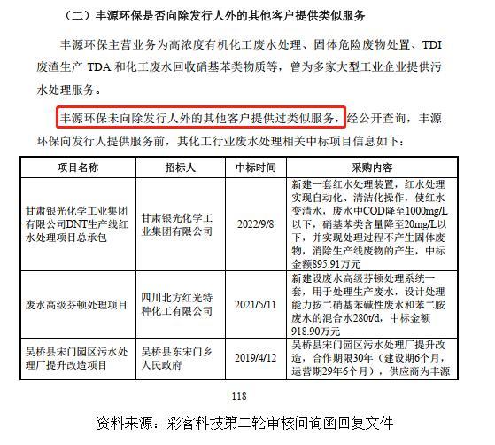 最让人困惑的是污水处理的定价。本来是用“成本加成”法,而2023年10月,突然改成了按一家叫“丰源环保”的第三方机构的测算报告来定价。问题是,彩客科技自己在第二轮问询回复里写明了:“丰源环保未向除彩客科技外的其他客户提供过类似服务”。