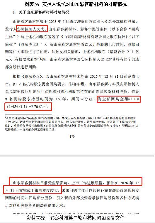 此外,实控人戈弋那边还压着一份对赌协议,如果山东彩客新材料有限公司(以下简称“山东彩客新材料”)无法在2026年底前上市,实际控制人戈弋及关联方可能要掏出将近2.7亿元来回购股份。这么大一笔钱,会不会通过一些隐秘渠道传导到彩客科技来?这也是一个悬在彩客科技头顶上的风险。