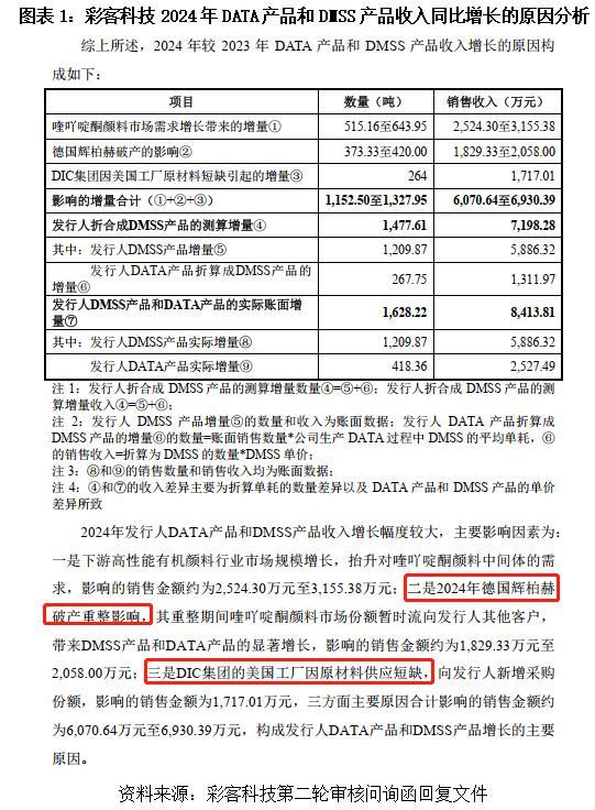 彩客科技在回复监管问询的时候,其实已经交代了底牌。2024年的业绩爆发,最主要推手有三:一是德国颜料巨头辉柏赫(Heubach Colour Pvt Ltd)破产,供应链出现大窟窿,彩客科技通过“补位”捡了不少订单;二是下游市场需求在回暖;三是大客户DIC集团(指日本DIC株式会社及其控制的企业)的美国工厂因原材料供应短缺,临时找彩客科技救急买了大批货。